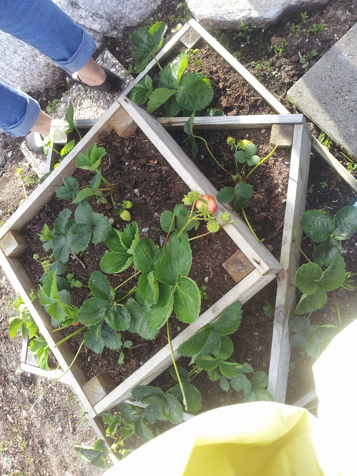 En god blomsterprat i solen.Vi fikk servert jordbær og nybakte boller,aldeles nydelig i kveldssolen. |